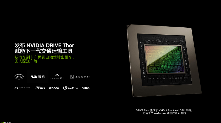 今年3月,NVIDIA宣布了一批汽车合作商,包括比亚迪和小鹏以及广汽埃安旗下昊铂(Hyper)等车企,以及文远知行等智驾技术解决方案供应商。此前,理想汽车和吉利旗下极氪品牌也表示将使用NVIDIA的Drive Thor芯片。
