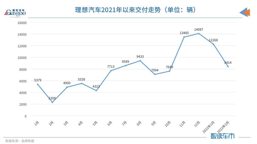 具体来看,2月理想汽车共计交付8414辆车,同比增长265.8%。但其2月相比1月交付量减少了3854辆,除春节因素影响,理想2月还受到了苏州疫情的影响,导致部分零部件供应短缺影响了生产。