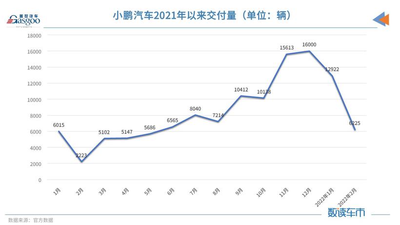 在哪吒之后,小鹏汽车2月环比下降幅度在新势力中最为突出。数据显示,小鹏汽车2月交付量为6225辆,相比1月减少了6697辆,环比下降约51%,对此,小鹏汽车暂未就此进行更多说明。但从已有消息看,今年1月底至2月春节假期期间,小鹏汽车对肇庆生产基地进行了技术改造,于2月中全面恢复生产。