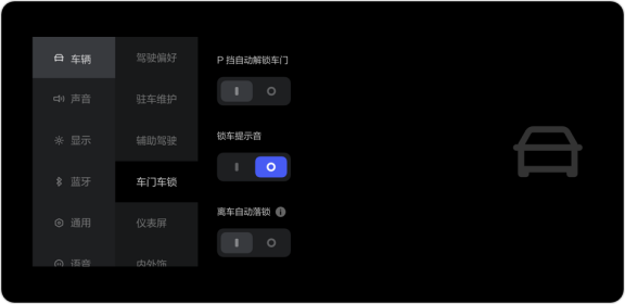 8、新增车辆闭锁成功时鸣笛提示功能,用户可在设置-车辆-车门车锁中开启此功能。