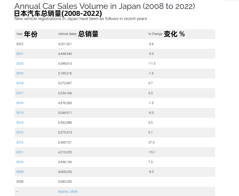 2022年日本汽车市场整体规模大概是咱们的1/7-1/6,2022年全年汽车销量420.13万辆,比起2021年也有高达5.6%的跌幅。